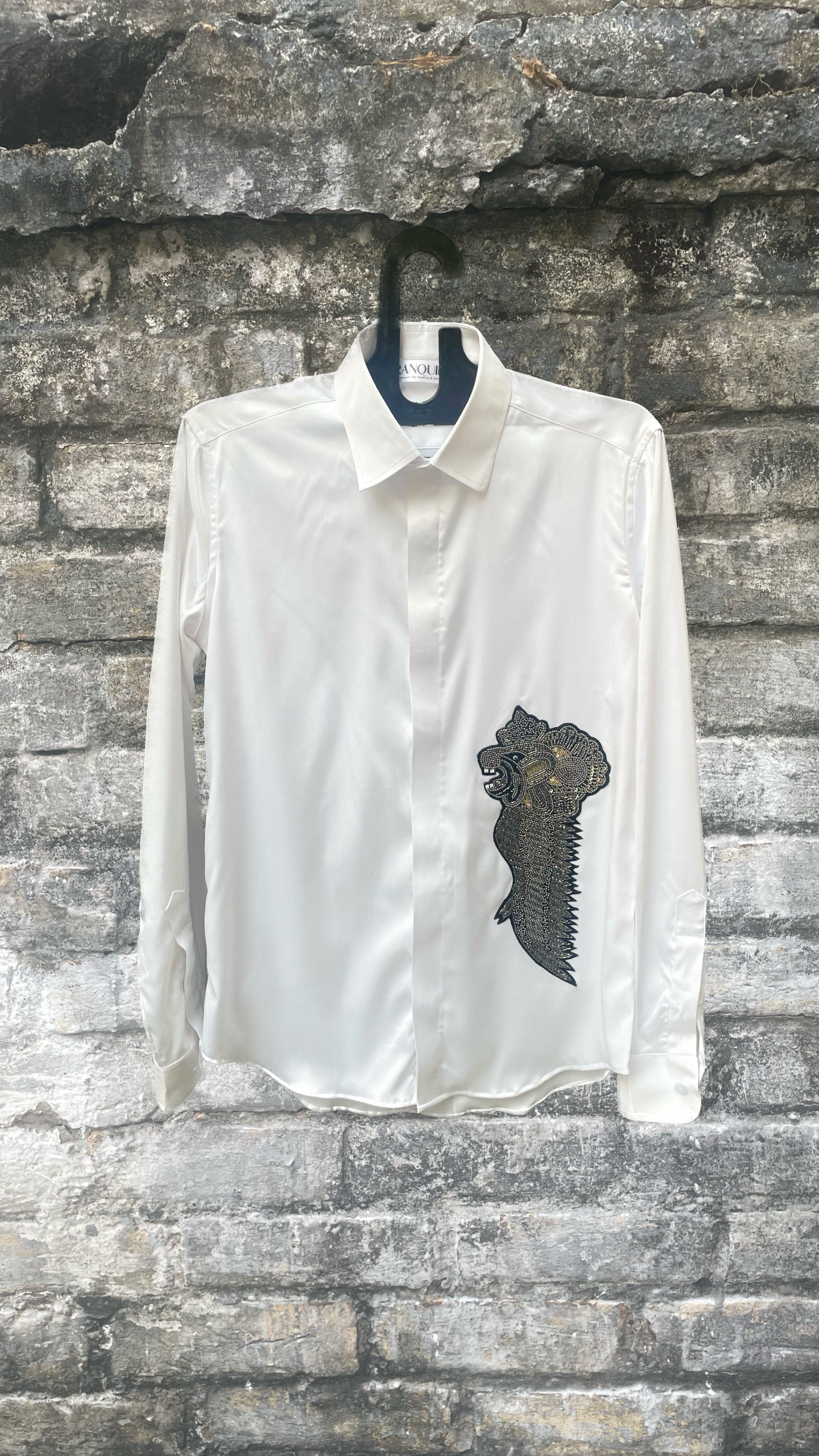 Lend posh style to your modern day wardrobe by investing in this embroidered shirt.It is enhanced with a fiery hued embellished motif.